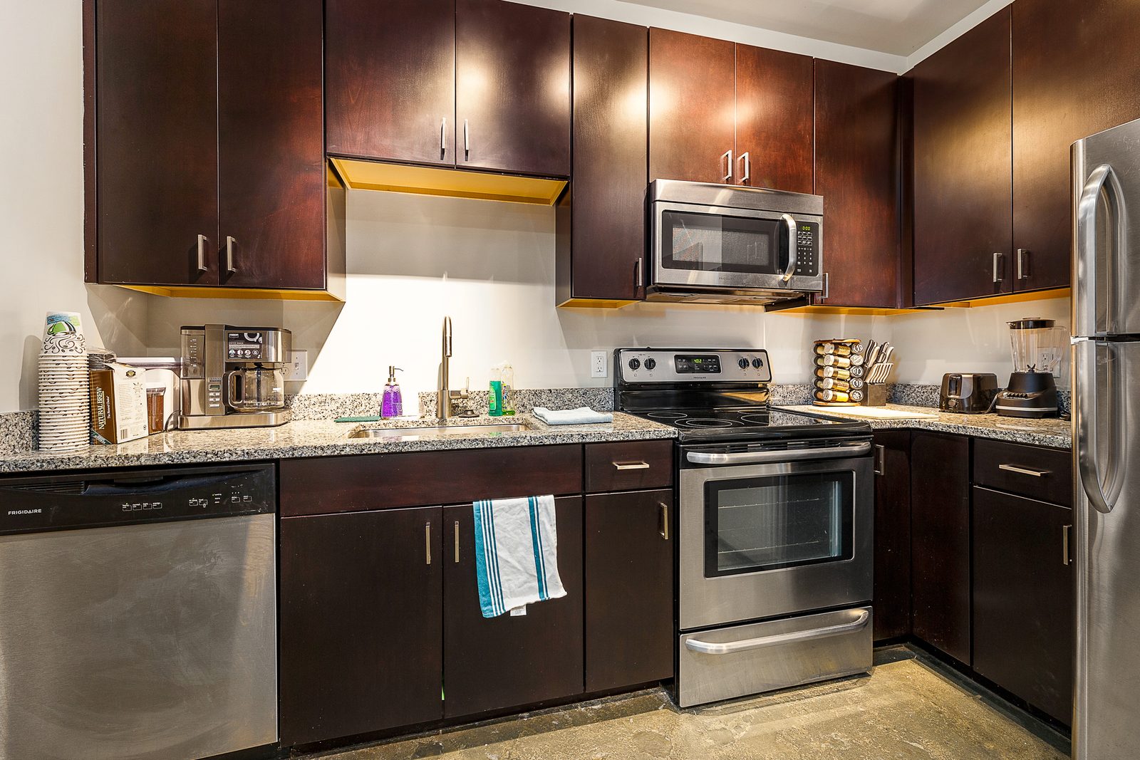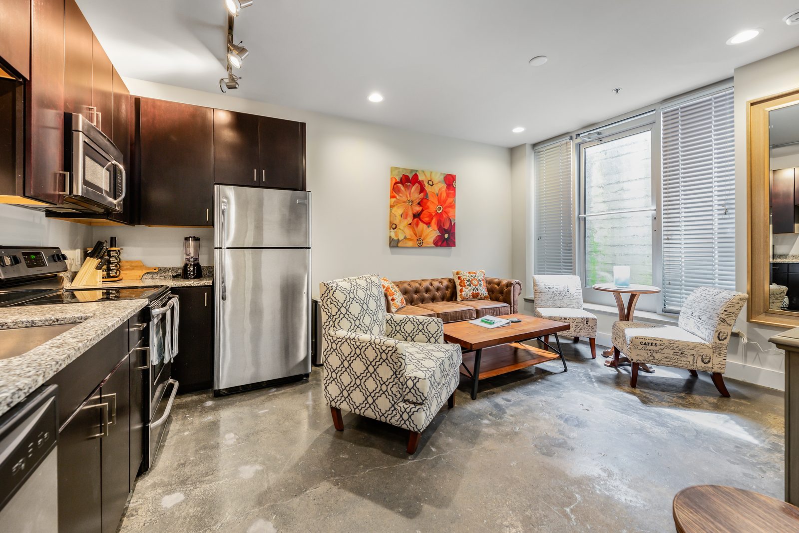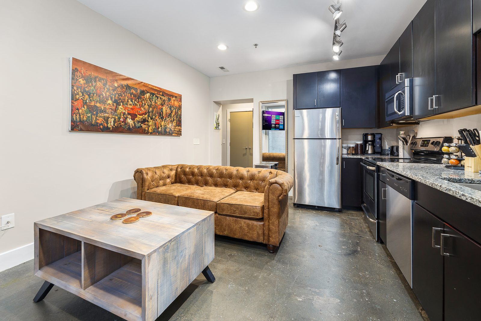 It's also the right call if you're here for a specific reason and not planning to lounge at home. Roanoke regulars who come downtown for a Carilion appointment, an event at the Berglund Center, a wedding at Hotel Roanoke, or a weekend at the Greenway tend to book the Standard. You'll spend most of your waking hours out — at the brewery downstairs, at Martin's three blocks over, on Mill Mountain, walking the Greenway — so a 450-square-foot footprint that nails the basics (real kitchen, comfortable Queen bed, quiet sleep, fast Wi-Fi for the morning email) is exactly enough.